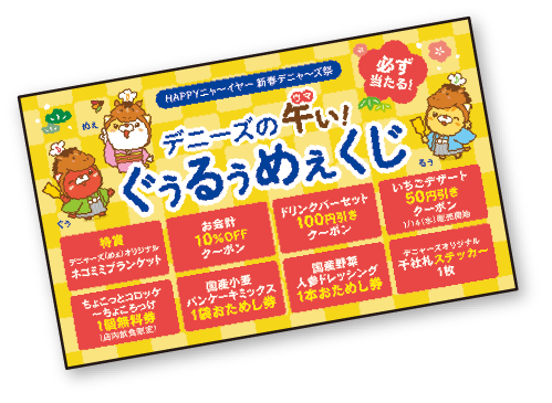 - 新春デニャーズ祭「ぐぅるぅめぇくじ」