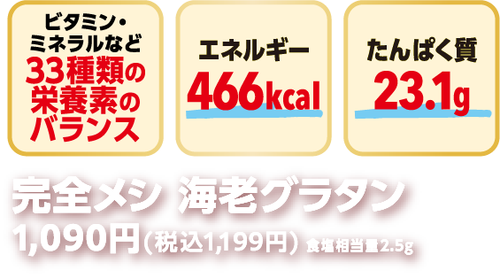 - ※3:食塩相当量(2.9g)はスマートミール基準の食塩相当量の指標(450kcal〜650kcal未満で3.0g未満)をクリア